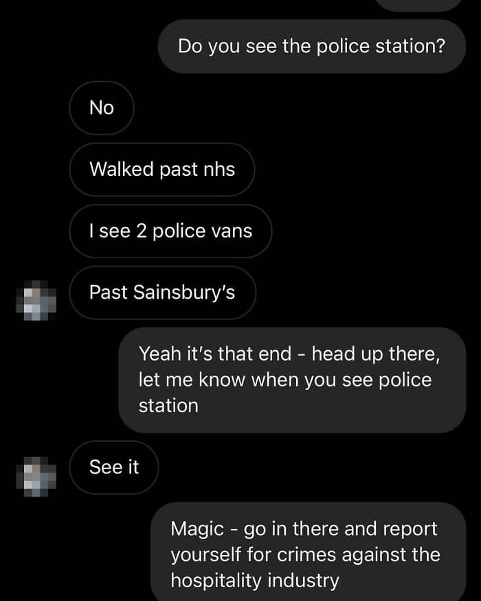 So ‘Four Legs’ wasted the influencer’s time, getting them to go all the way to Islington to supposedly pick up the food, and then directed them to the local police station, telling ’em to turn themselves in. Their crime? Trying to pull the wool over the food industry’s eyes.