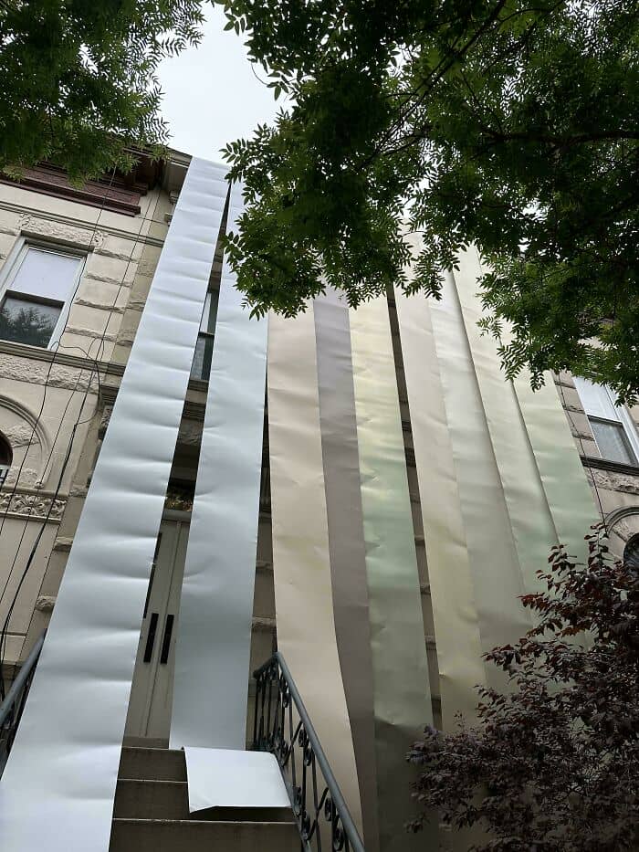 #5 What Are These Long Metal Looking Sheets Being Draped Over This Building?