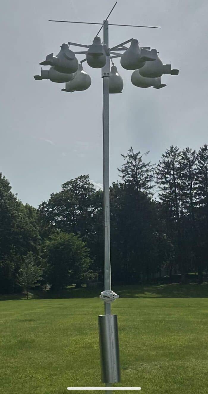 Two of my neighbors have purple Martin nesting boxes up on poles but theirs look like little apartment buildings. But there are gourd-style ones in our area, too.