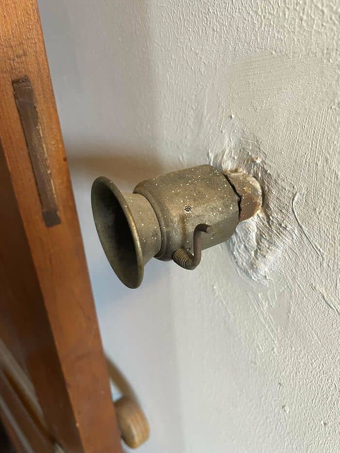 #9 Metal Cylinder In Wall Of 1800s House With A Little Lever And Flap