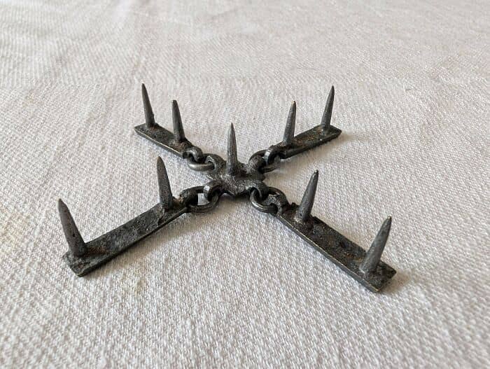 #64 Palm Sized Four Legged Metal Spike Device Presumably From Early 20th Century