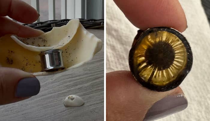 #70 What Is The Is This Metal Object That Looks Like An Eye? Found Embedded In A Shell From A Beach In Florida