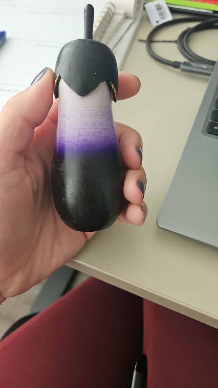 #84 Small Hollow Wooden Eggplant With Removable Lid And Scoop Attached