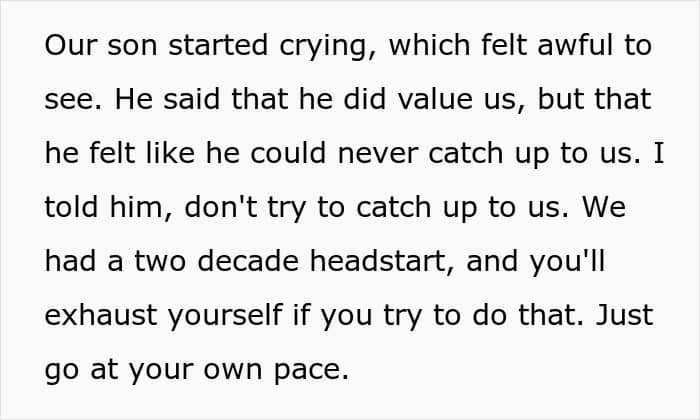 The redditors had a couple observations. First of all, their reaction to their son approaching them with his feelings in a mature way was pretty awful. They started making excuses instead of being compassionate and rather than validating her son’s feelings, the mom wanted him to know that now she is hurt.