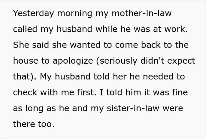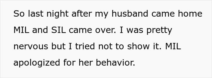 Fortunately, her mother-in-law eventually came to her senses and apologized for her frankly outrageous behavior