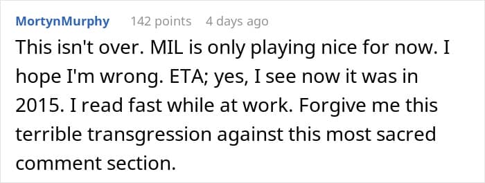 RELATED:Mothers-in-law get a bad rap, but, to be fair, sometimes they really do deserve it