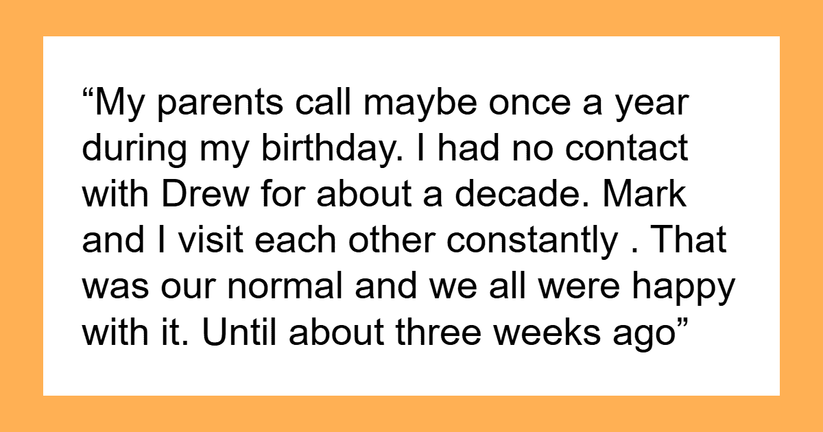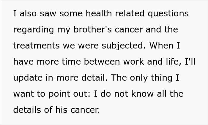 So, the Original poster (OP) explains that she is originally from South America and is the third child of her parents, after older brothers “Drew” and “Mark.” Both the author and Mark were essentially born with the sole purpose of saving their older sibling when he was diagnosed with cancer at age two.