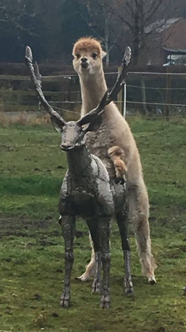 #40 Nana Sent Me A Picture Of Her Neighbour’s Alpaca Humping Their New Stag Sculpture