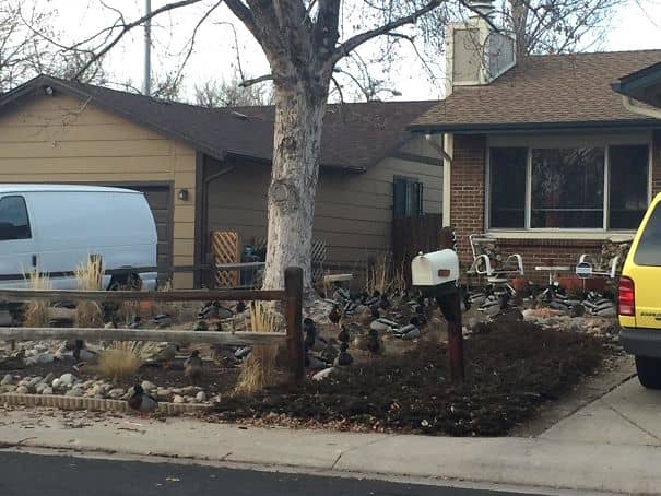#89 My Brother Has A Neighbor Who Feeds The Ducks Every Day! Now Ducks Pretty Much Run This Whole Street. This Is His Neighbors Yard Pretty Much 24/7. Most Times You’ll See Around 60 Ducks In His Yard And In The Street, Not Caring If You Want To Drive Anywhere. They’ve Taken Over