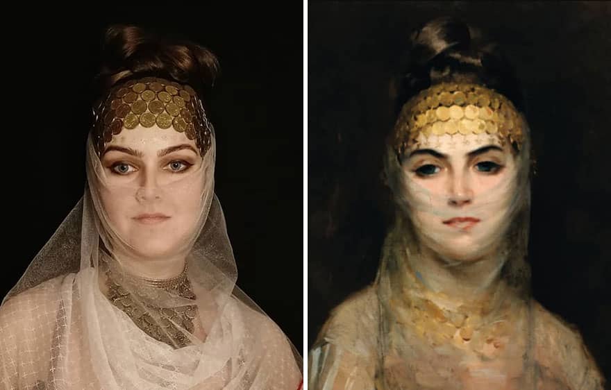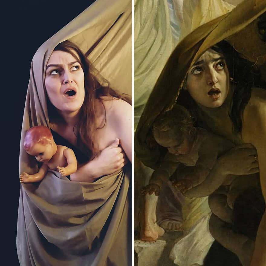 I started to imitate pieces of art for the #gettychallenge. At the beginning, I decided to do it daily for 30 days, but at the end of this period, I couldn’t stop. I’m still continuing and now I am on day 130. I have recreated Middle Eastern galleries, ancient, Indian, Red Cross posters, and others.