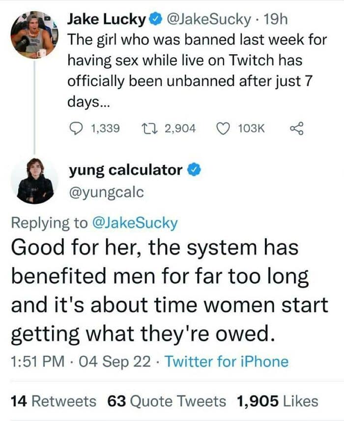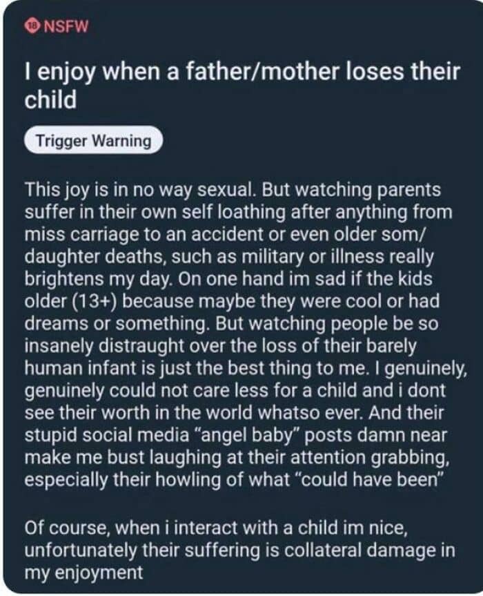 “It was one of those posts that you feel your face physically screw up at, it’s that cringe,” he added. “These kinds of posts are the ones that I am particularly fond of, because they are the posts that deserve to be called out the most, and are the peak of cringe content on here. And I’m very proud of our community that we generally hold a mutual agreement on this, that there is a line which we do not cross.”