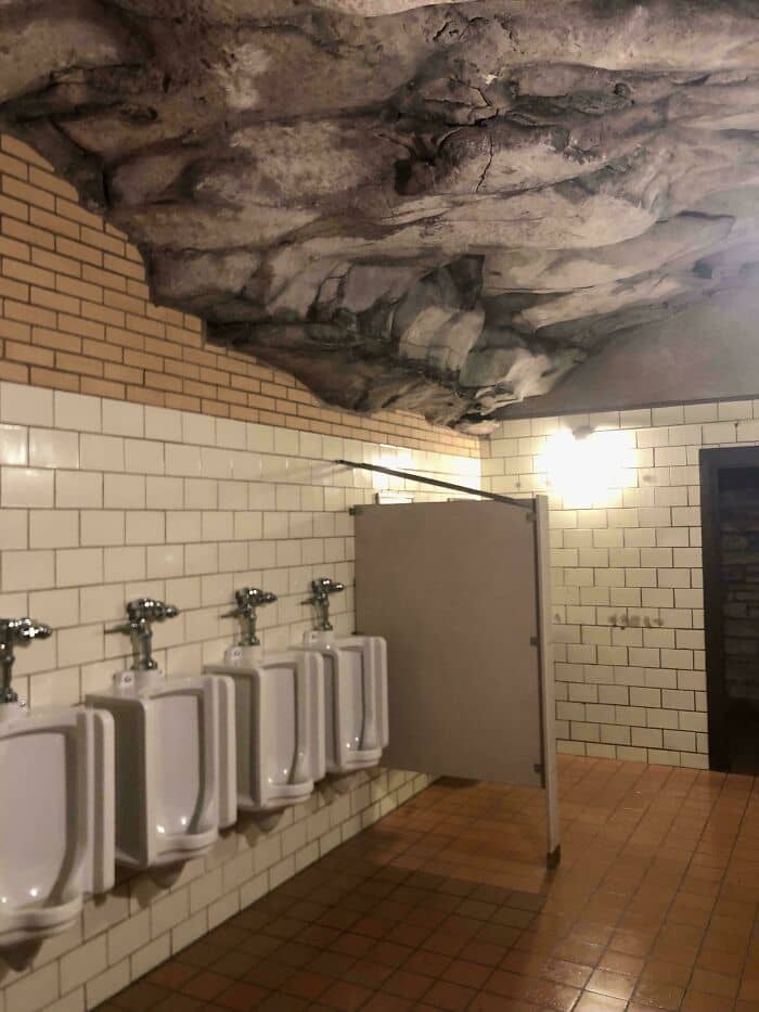 I don’t know about you, but I’d file thebathroomsat Mammoth Cave National Park under something more than mildly interesting. Thenational parkis home to the largest-known cave system in the world and has over 600,000 visitors every year. The tile work in the bathroom complements the natural rock surface of the cave beautifully, and the bathroom itself is 275 feet below the ground.